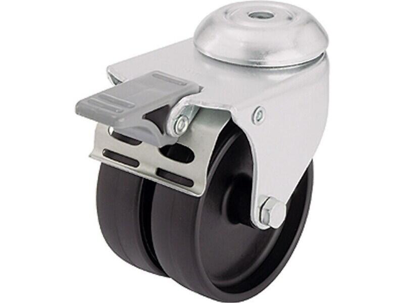 Dubbla rullar med bakre hål och stopp-fix-broms Blickle LMDA-POA 75G-FI