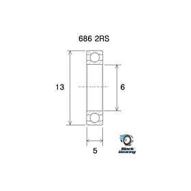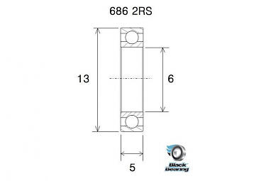 Black Bearing B5 686-2rs Silver 6 x 13 x 5 mm