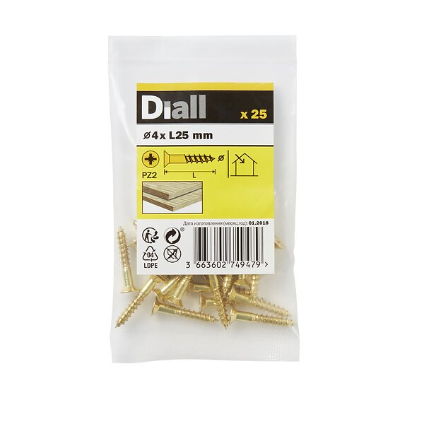 Diall Pozidriv Brass Screw (Dia)4mm (L)25mm, Pack Of 25