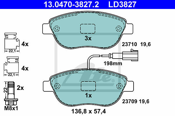 ATE Bromsbeläggssats. skivbroms 13.0470-3827.2