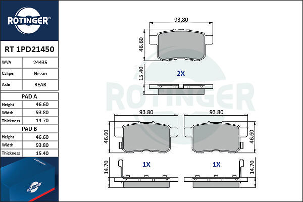 Rotinger Bromsbeläggssats, skivbroms RT 1PD21450