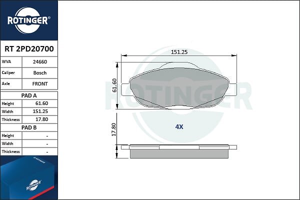 Rotinger Bromsbeläggssats, skivbroms RT 2PD20700