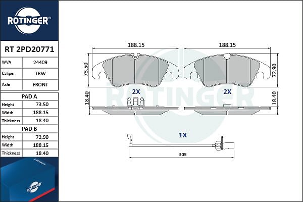 Rotinger Bromsbeläggssats, skivbroms RT 2PD20771