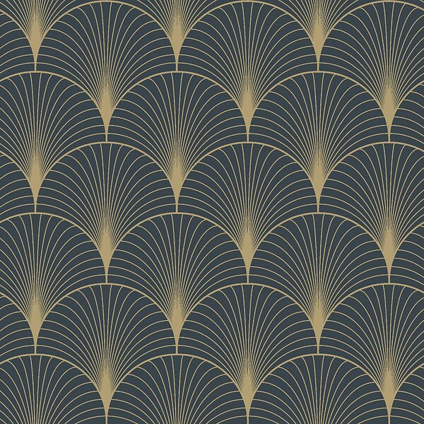 ESTAhome Tapet Art Deco Mörkblå/Guld tapet art deco mörkblått och guld EW139231
