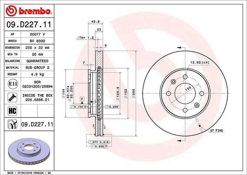 Brembo Hyundai Bromsskiva COATED DISC LINE 09D22711