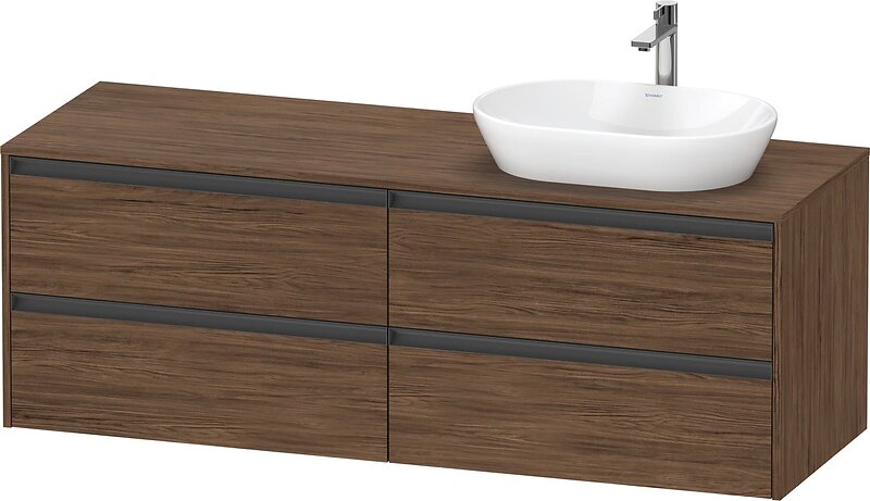 Duravit Ketho.2 Servantskap, 4 Skuffer 1600x550 mm, Høyre, Mørk Valnøtt