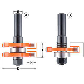 CMT Fräs borrset tongue & groove; 1/2'' (12.7 mm); D=47.6 mm; profile A+B; 2 del