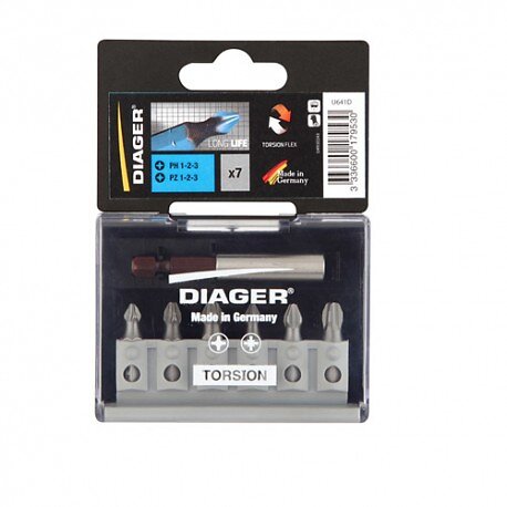 Diager Skruvbitsats U641D; PZ; PH; 6 st. bitshållare