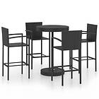 vidaXL Garden Bar Set 5 Piece Poly Rattan Black Patio Outdoor Table and Chairs