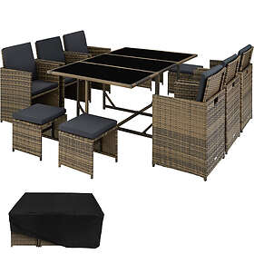 Rattan garden furniture set Malaga 6+4+1 with protective cover nature Brown