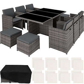 Rattan garden furniture set New York with protective cover tables and chairs, set, outdoor table chairs grey Grey