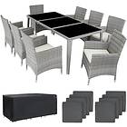 TecTake Rattan garden dining set Monaco | 8 seats, 1 table - light grey (colour error)