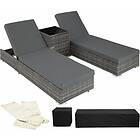 TecTake Sun lounger pair 2 loungers, 1 side table & cover grey