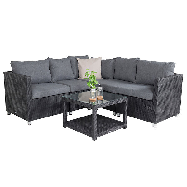 Venture Design Loungegrupp Vamos Utomhus modulsoffa 3+2+1 Svart / Grå dyna 9411-001