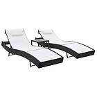 vidaXL Chaise longuear 2 st med bord konstrotting och textilene svart