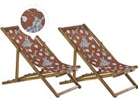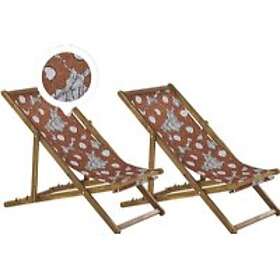 Beliani Set of 2 Garden Loungers Light Acacia Wood ANZIO Poppies Pattern