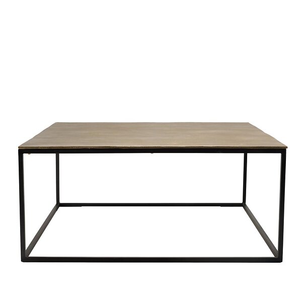 Macabane Table basse carrée 90x90cm aluminium doré et noir pieds métal JOHAN