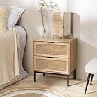Macabane Chevet 2 tiroirs cannage naturel pieds métal noir MARCEAU