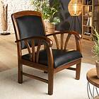 Macabane Fauteuil en teck et cuir style colonial Noir