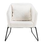 Macabane Fauteuil tissu bouclette blanc pieds évasés métal noir AGATHE