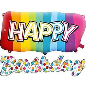 Folieballonger Happy Birthday Regnbåge