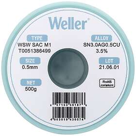 Weller WSW SAC M1 Lödning blyfri spole Sn3.0Ag0.5Cu 500g 0.5 mm SN3.0AG0.5CU 500