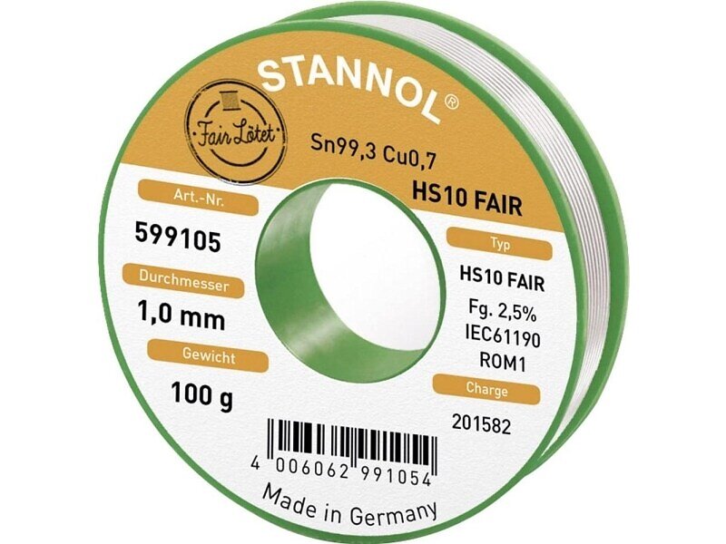 Le meilleur prix pour Stannol HS10-Fair Loddetin Spole Sn99.3Cu0.7 100g 1 mm est actuellement de 21,93 €. leDénicheur compare les promos et les offres de marchands en ligne.