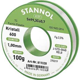 Le meilleur prix pour Stannol Kristall 600 Fairtin Loddetin, blyfritt Blyfritt Sn99.3Cu0.7 100g 1 mm est actuellement de 19,99 €. leDénicheur compare les promos et les offres de marchands en ligne.