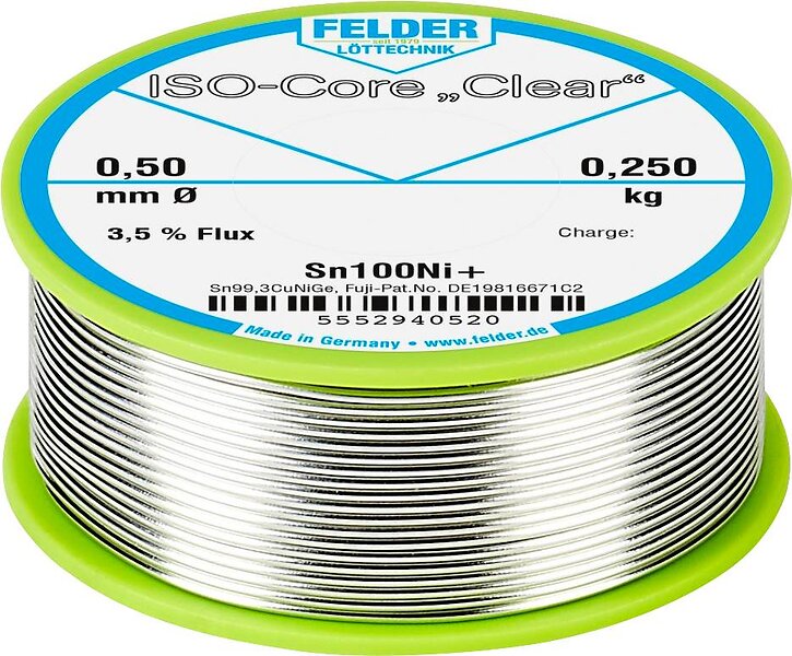 Felder Löttechnik ISO-Core Clear Sn100Ni+ Lödtenn Spole Sn99.25Cu0.7Ni0.05 0.250