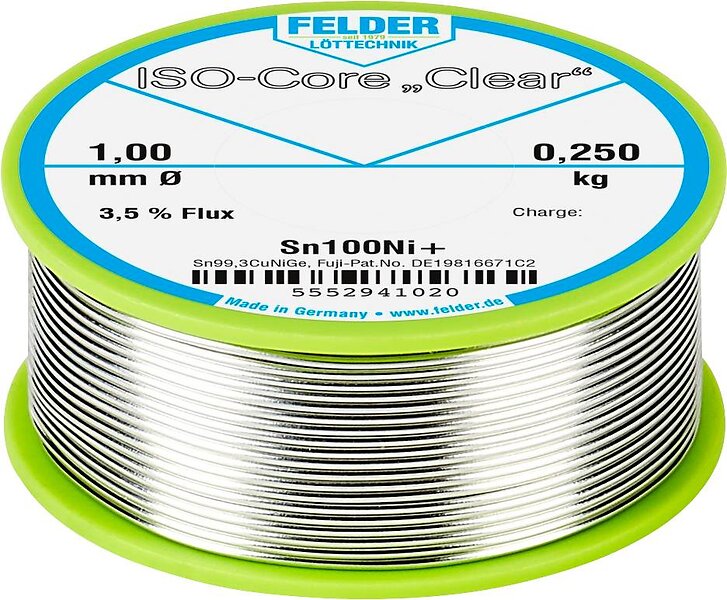 Felder Löttechnik ISO-Core Clear Sn100Ni+ Lödtenn, blyfri Spole Sn99.25Cu0.7Ni0.