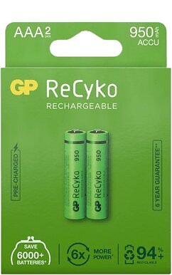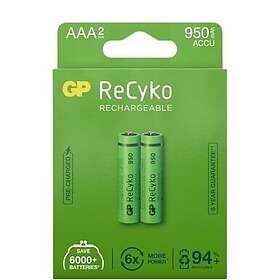 GP Batteries ReCyko NiMH AAA-batterier 950 mAh (R6) 2-P