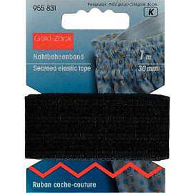 Gold-Zack Elastiskt band med söm 30mm svart 1 m