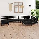 vidaXL Loungegrupp för trädgården 9 delar svart massiv furu