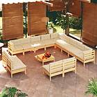 vidaXL Loungegrupp med gräddvita dynor 14 delar massiv furu