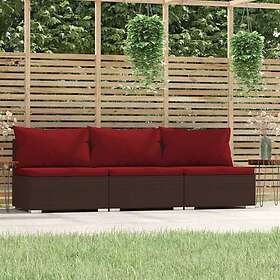vidaXL Canapé 3-sits med dynor konstrotting brun