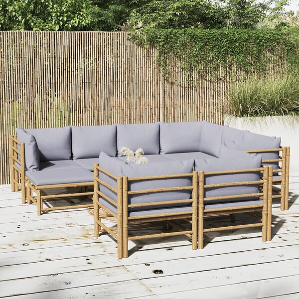 vidaXL Loungegrupp 10 delar ljusgråa dynor bambu