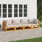 vidaXL Loungegrupp för trädgården 4 delar ljusgråa dynor massivt trä