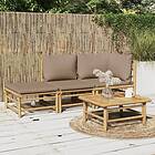 vidaXL Loungegrupp för trädgården 3 delar taupe dynor bambu