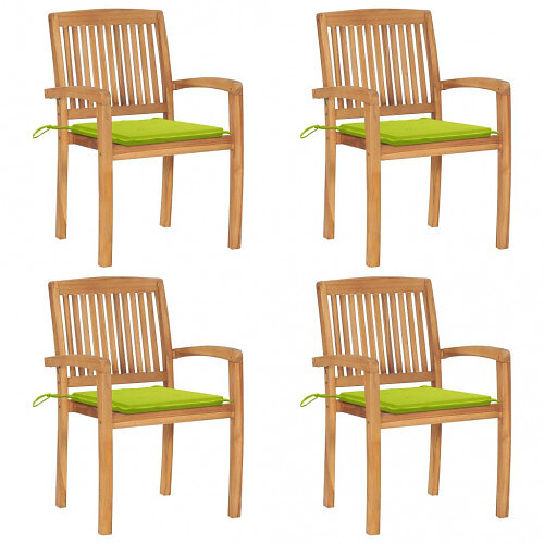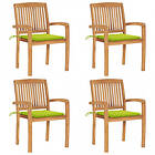 vidaXL Stapelbara trädgårdsstolar med dynor 4 st massiv teak 3073221