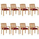 vidaXL Stapelbara trädgårdsstolar med dynor 8 st massiv teak 3073288