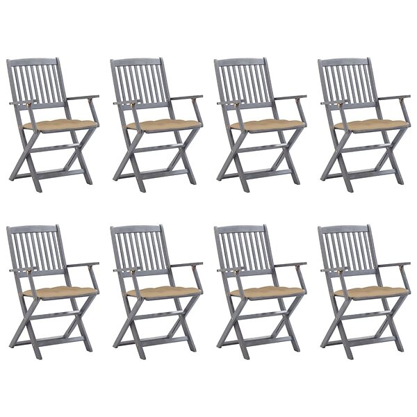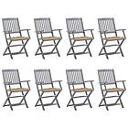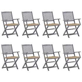 vidaXL Hopfällbara trädgårdsstolar 8 st med dynor massivt akaciaträ 3078280
