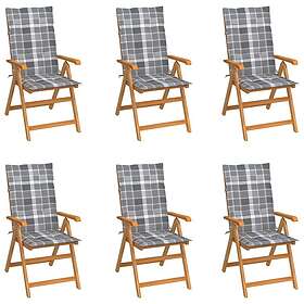 vidaXL Chaises de jardin avec coussins motif à carreaux gris Ensemble de 6 teck massif 3065574