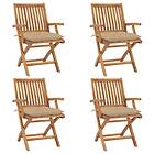 vidaXL Hopfällbara trädgårdsstolar med dynor 4 st massiv teak 3072741