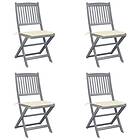 vidaXL Hopfällbara trädgårdsstolar med dynor 4 st massivt akaciaträ 3064565
