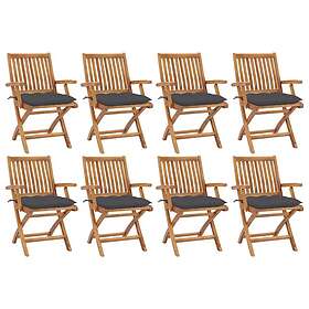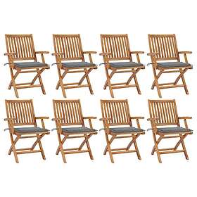 vidaXL Hopfällbara trädgårdsstolar med dynor 8 st massiv teak 3072778