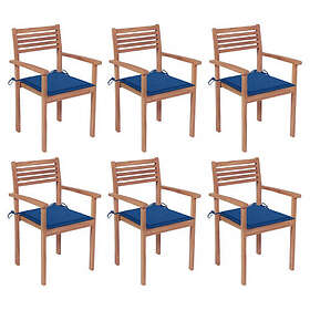 vidaXL Stapelbara trädgårdsstolar med dynor 6 st massiv teak 3072582