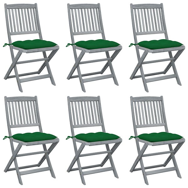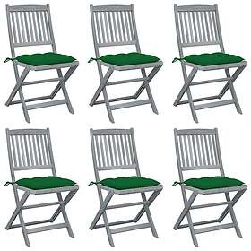 vidaXL Hopfällbara trädgårdsstolar med dynor 6 st massivt akaciaträ 3065454