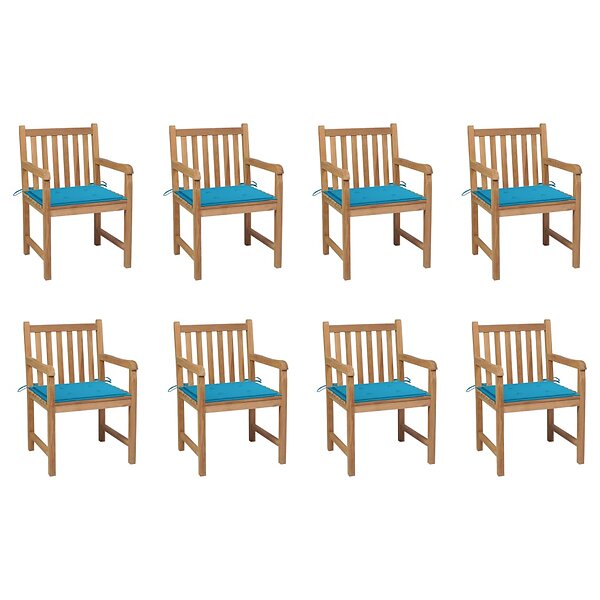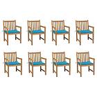 vidaXL Trädgårdsstolar 8 st med blåa dynor massiv teak 3073062