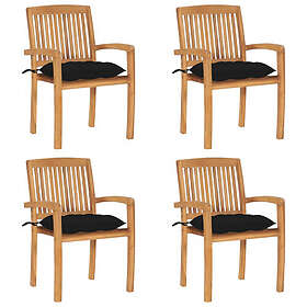 vidaXL Stapelbara trädgårdsstolar med dynor 4 st massiv teak 3073262