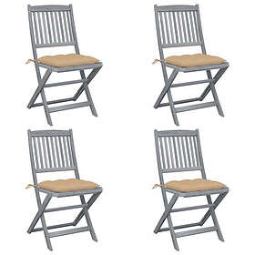 vidaXL Hopfällbara trädgårdsstolar med dynor 4 st massivt akaciaträ 3064581